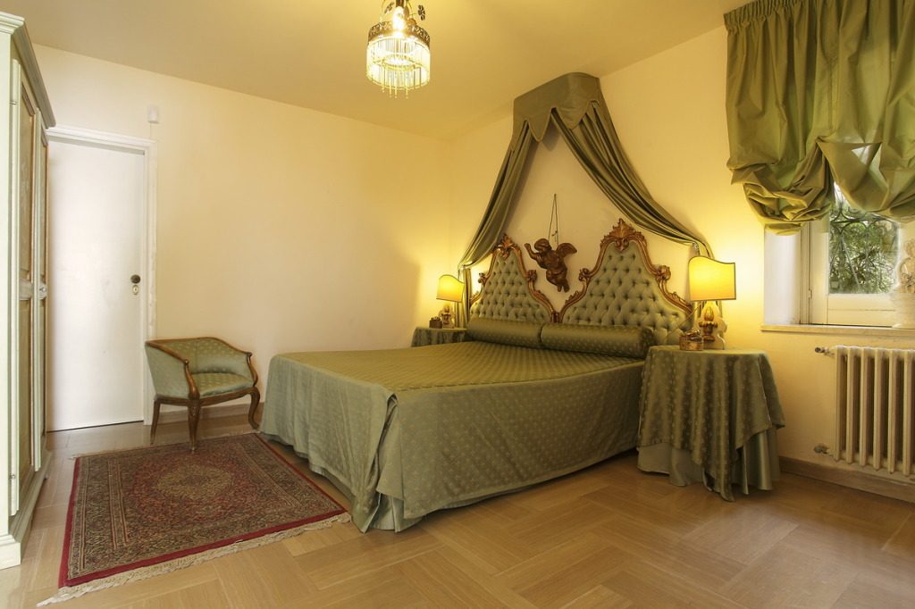 Raffinata ed elegante , arredata in stile classico ,presenta tendaggi e tessuti pregiati sulle nuance del verde, pavimenti in marmo, letto matrimoniale flou decorato da baldacchino in seta a parete e testata…